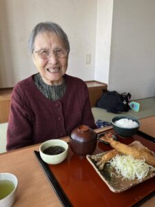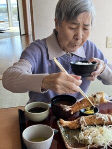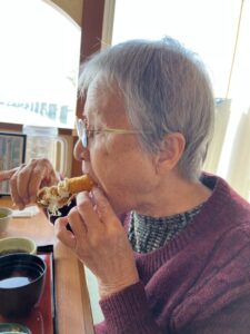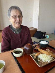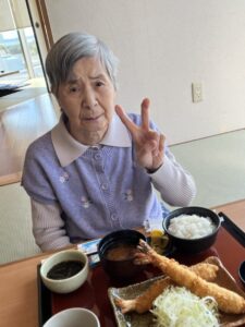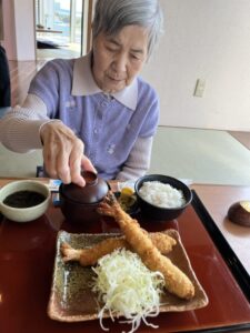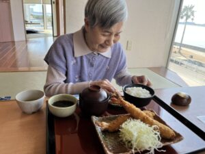 エビフライの大きさにびっくりしてました(⌒∇⌒)
