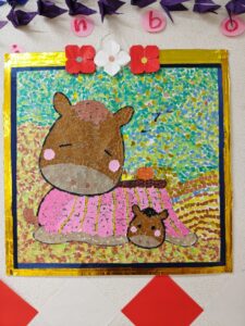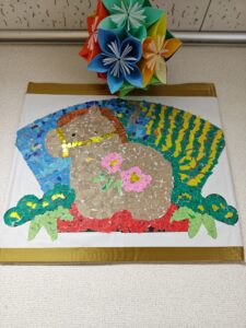 最後に利用者様が制作された、来年の干支の貼り絵を