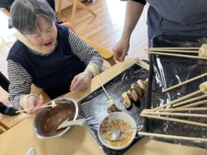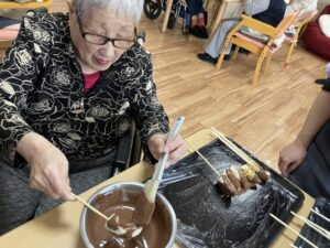 今回はチョコバナナを作り、皆様で召し上がっていただきました!