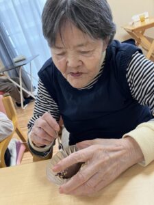 やないづではおやつ作りのレクリエーションを定期的に行い、ご利用者様たちにもお手伝いをしていただいています!