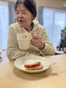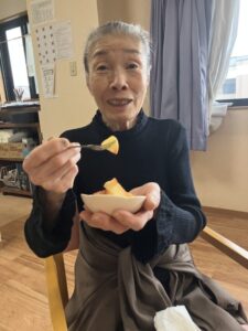 最後はりんごの皮の赤色も焼き色も映えるおやつが出来上がりました!