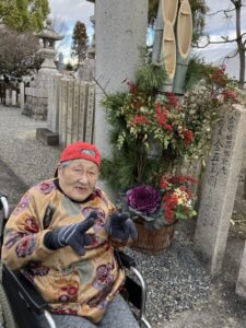神社の鳥居の近くには大きな門松が飾ってあったので並んで記念撮影もさせてもらいました。