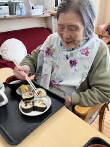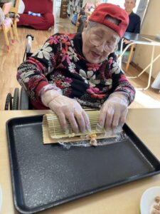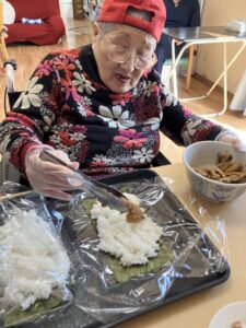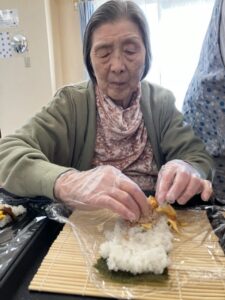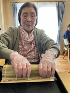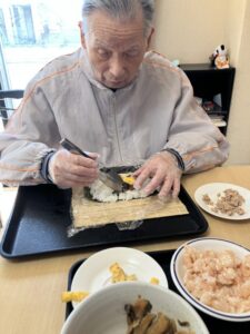 愛の家グループホームやないづでは節分の行事としてご利用者の皆様と一緒に恵方巻作りを行いました