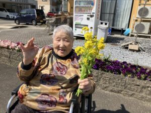 「お花摘んできたら生けてくれますか?」とお伝えすると「やったるよ」と快く引き受けて下さいました。