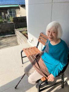利用者様とホーム玄関にて外気浴を楽しみました。