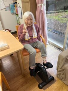 ラジオ体操や、足腰を鍛えるサイクルマシーン運動など