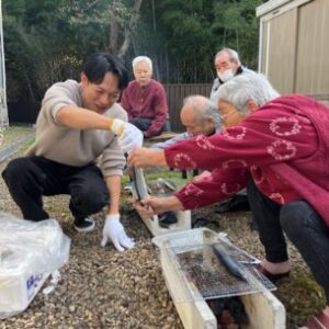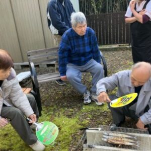 鮮魚店で働かれていたご利用者様が腕を振るい、炭火で秋刀魚を香ばしく焼いてくださいました。