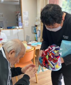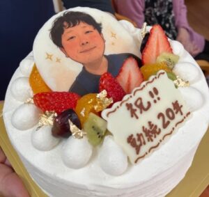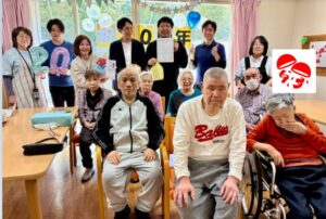 このたび、勤続20年の表彰式を行いました。利用者様からの心のこもったプレゼントや、スタッフによるサプライズとして似顔絵ケーキを贈り、感謝とお祝いの気持ちをお伝えしました。最後には皆様で記念写真を撮影し、笑顔あふれる楽しいひとときを過ごすことができました。