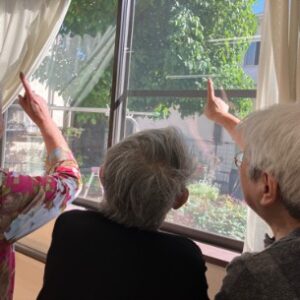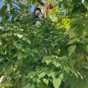 「すごいなぁ。あんな高い所で作業しとる。」「どんどん枝が落ちてくるなぁ。」など興味津々といったご様子でした。