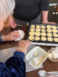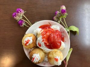 出来上がった鈴カステラを生クリームでデコレーション!!