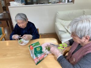 手分けしてピーマンやウインナーを小さく切っていきます✂