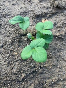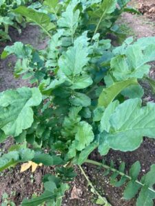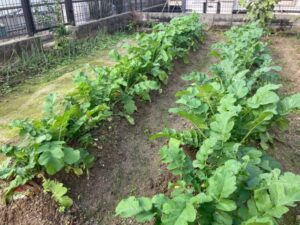 ブロッコリーの隣には小松菜。こちらも順調に成長しています。