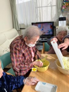 キャベツやウインナーなど皆で手分けして材料を切っていきます✂