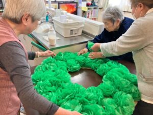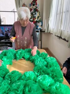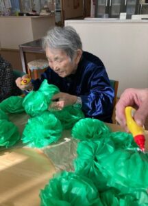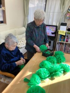 毎日少しずつ緑色のお花紙でお花を作ります🌺