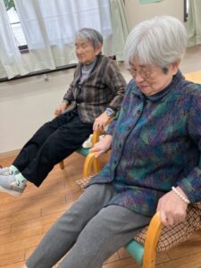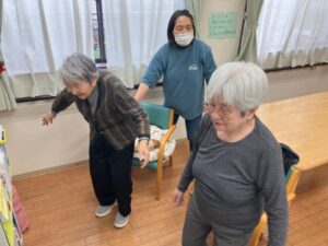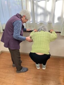 どういう訳か皆での体操が終わった後、ご利用者様が自発的にスクワットをされていました・・