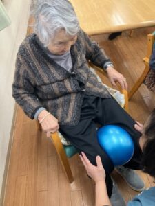次はボールを使っての足の運動。