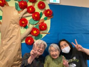 沢山の椿を見上げて「すごいなぁ。」「綺麗やなぁ。」とI様とY様。