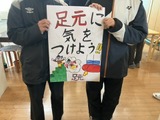 学生さんが作って下さった「高齢者の事故と事件」というポスターを真剣に読み上げるI様。