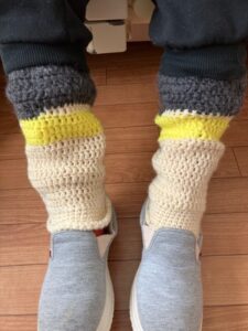 年が明けてからはせっせとレッグウォーマーを編まれています🧦