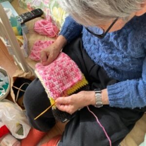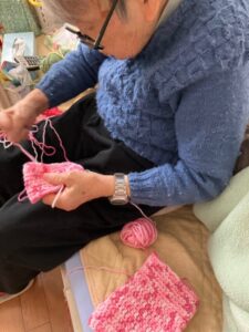 現在編まれているピンク色のレッグウォーマーがどんな感じになるか、スタッフ一同楽しみにしています。