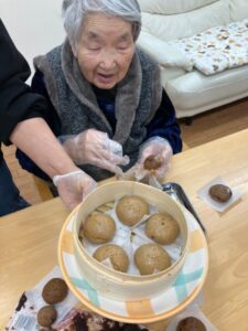 本日はおやつに黒糖饅頭を作りました!