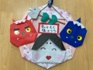 もうすぐ節分!ということで皆で節分の飾り作りをしました👹