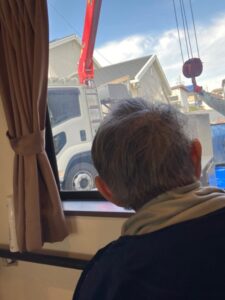 「すごいなぁー。」と工事の様子を窓越しに見つめるY様の後ろ姿です。