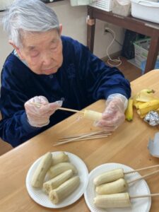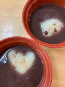 お汁粉、お善哉を作り、バレンタインデーにはチョコバナナ作りもしました♡