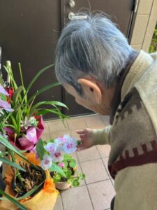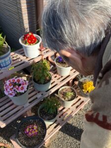 「いろんな種類があるわな。」と楽しそうにお花を愛でていたY様でしたが風に吹かれると「おー。寒い!」と肩をすくめて中に戻ろうとされました。