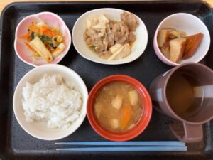栄養士さんが作った献立表に従って朝食は夜勤明けのスタッフが、昼食と夕食は調理さんが作ります。