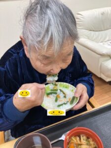 お食事の準備中には「いいにおいしてきた!」「おなかすいてきたなー。」などの声も聞かれ、皆さまお食事を楽しみに待たれています☻