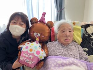 T様の98回目のお誕生日のお祝いをさせて頂け、スタッフ一同大変嬉しく思っております。