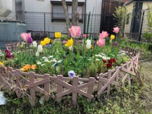4月に入り中庭のチューリップがどんどん咲いてきています🌷🌷🌷