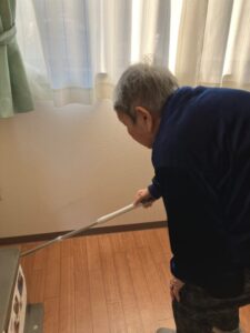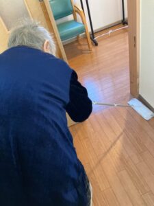 一つ難点があるとすれば・・Y様のモップ掛けは前に進むのではなく、後ろに下がっていくスタイルということです。後ろに下がる際に転倒されないよう、スタッフは常に待機です・・・