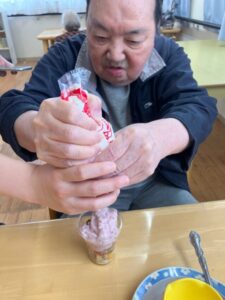 生クリームやフルーツ、コーンフレークを好きなように盛り付けます!!