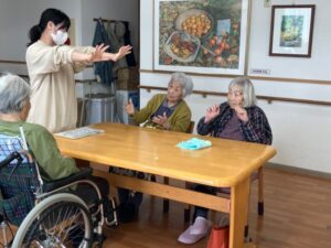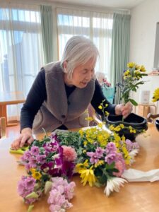 お花を生けてくださったり、レクをしたり過ごしています
