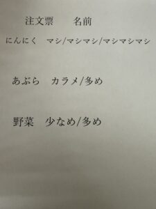 二郎系ラーメンなので、にんにくマシマシとかあるみたい!