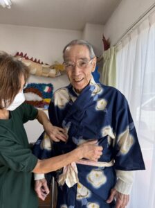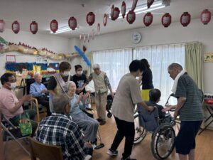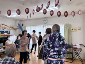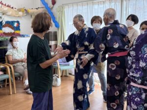 男性陣が浴衣に着替えて盆踊りの準備です。