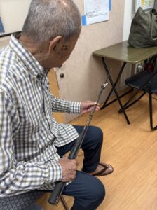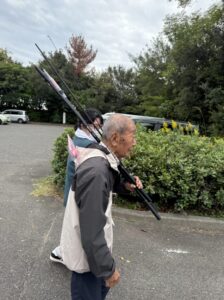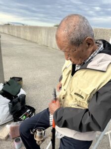 ご自分の釣り竿を確認。釣り竿を触っているとき楽しそうにされていました。