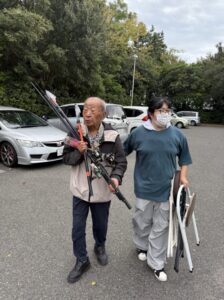 ご自分の釣り竿を確認。釣り竿を触っているとき楽しそうにされていました。