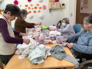 その他、リビングに貼っていますカレンダーの日にちを書いて頂いたり雑巾づくりをして頂いたり等。