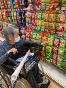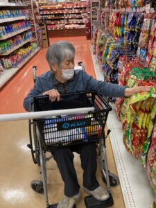 100歳のA様は元気に買い物に行かれます。車の乗り降りもほぼお一人で行え