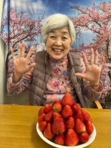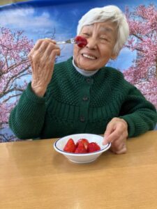 おやつはイチゴでしたが、「わぁ~、大きなイチゴ!」
