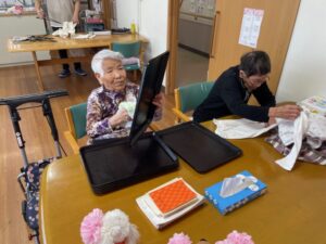 今日は皆様とお盆拭きや洗濯物たたみ。