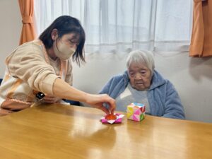 色とりどりの折り紙を使い、皆様で和やかな雰囲気の中、