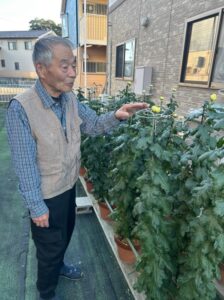 以前からおつたえしていますがホーム庭では、利用者様が大切に育てている菊が、