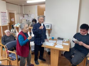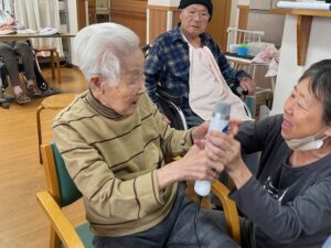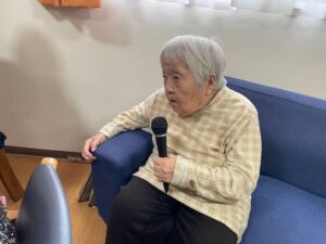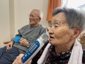 いつもは、マイクを持たずに歌ってみえる利用者が