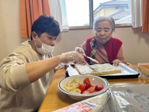 利用者様に好きな物をバイキング方式で取って頂きました。