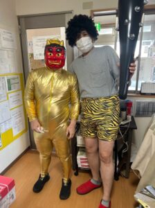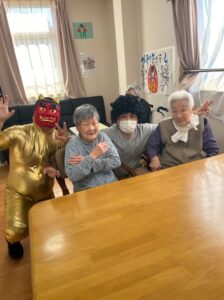 スタッフ・ホーム長が鬼に変身し、にぎやかに豆まきスタート!