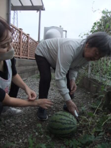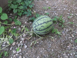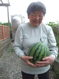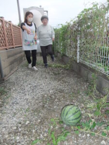 隣の畑から蔓が伸び、隣の畑のおじさんの監修のもと